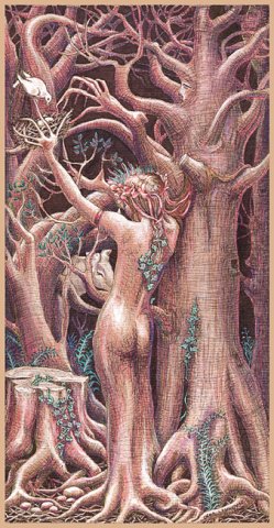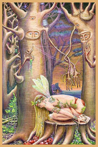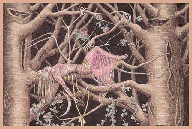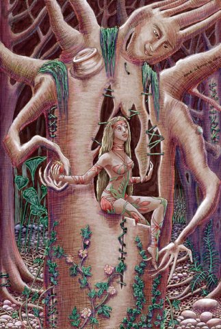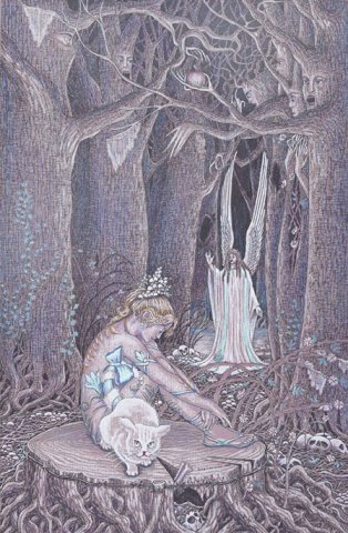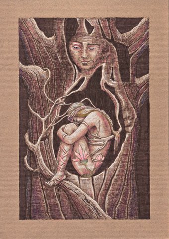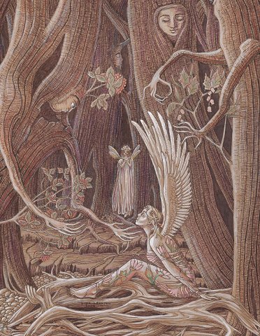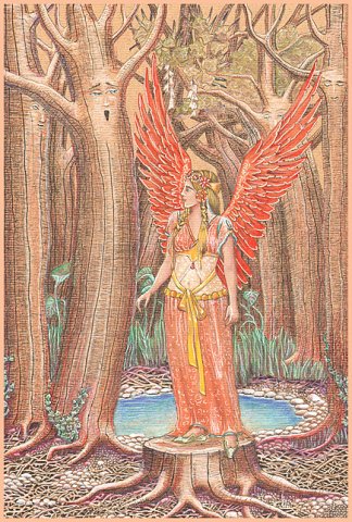 Angel in the wood, ink pastel on paper, 21 x 30 cm |