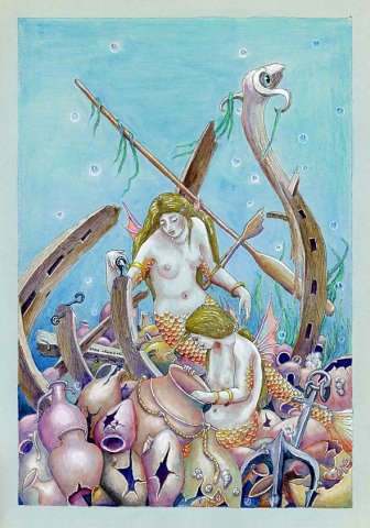 Treasure on the Seabed, ink, watercolour, pastel on paper, 21 x 30 cm |