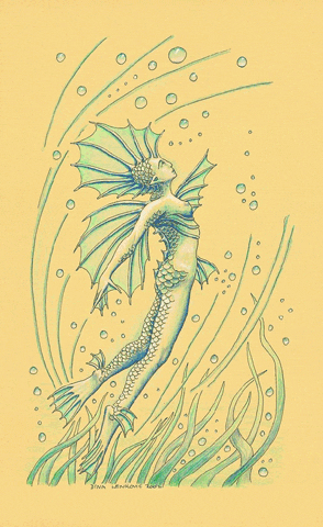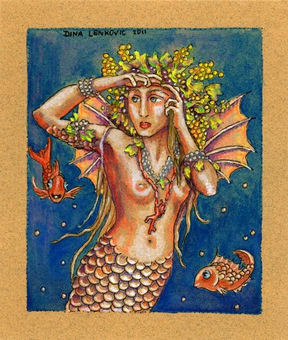 Small sea mermaid, watercolour, chalk, ink on paper, 11 x 12.5 cm |