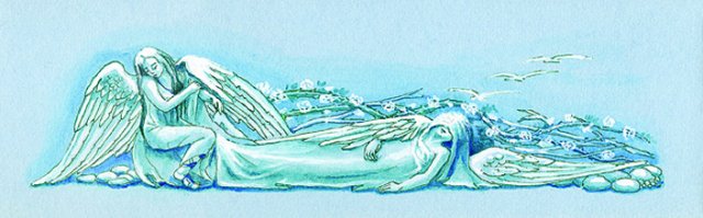 Sleeping angel, watercolour on paper, 25 x 8 cm | |